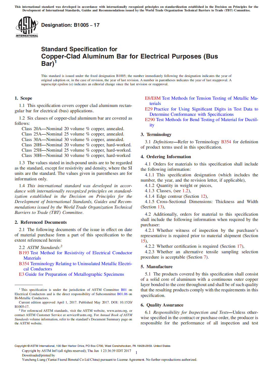国家电网企业标准《40.5 kV 及以下母线排用铜铝复合材料 技术规范》