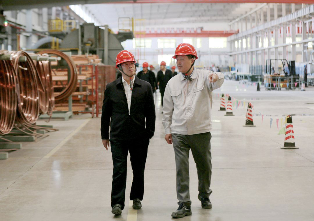 4月25日,中国有色金属工业协会党委副书记范顺科一行8人赴烟台开元(中国)进行调研座谈,有色金属工业协会领导深入车间现场了解生产情况。